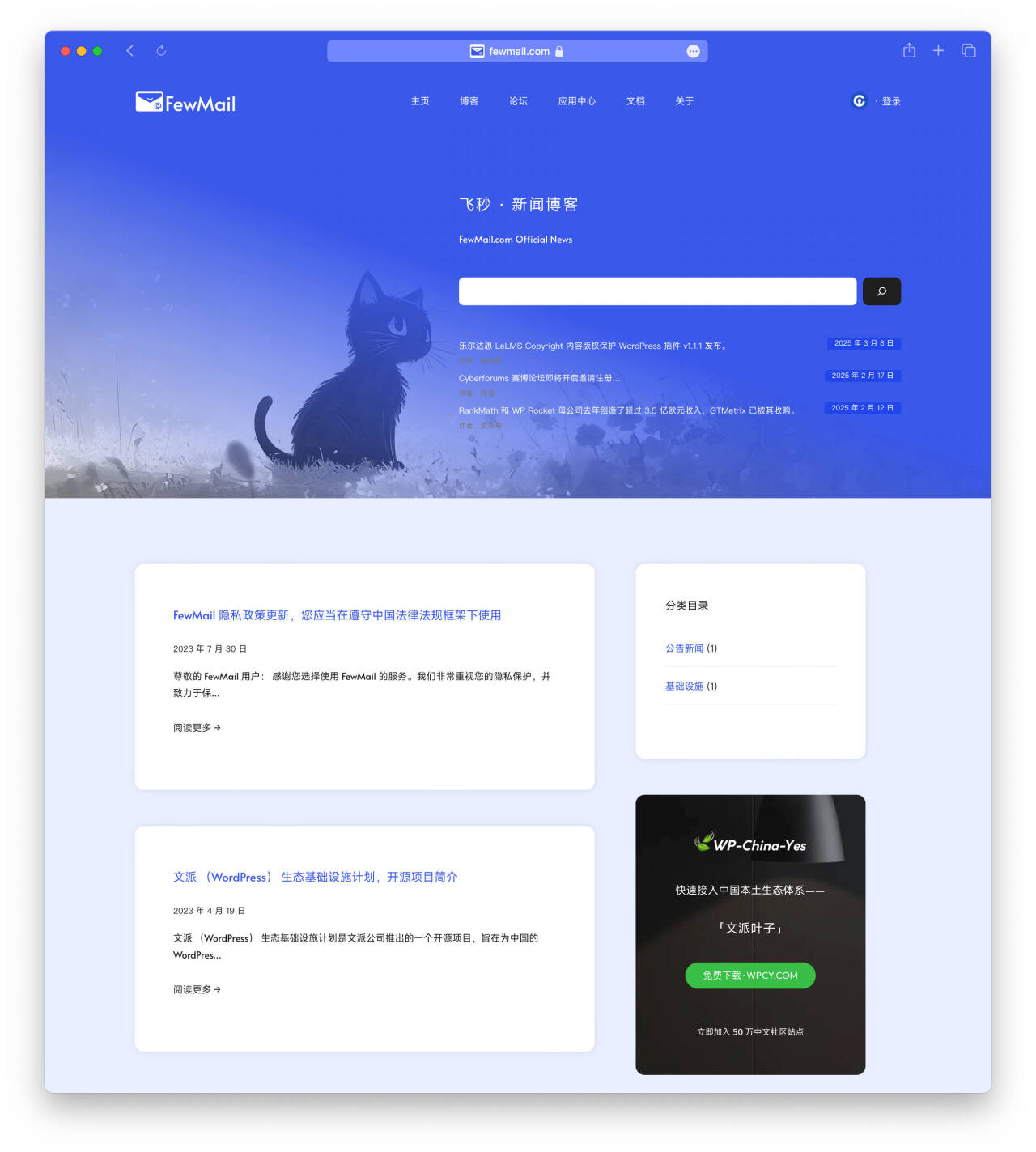 目前官网 FewMail.com 还在做最后的数据完善,我们将于 2025 年中下旬上线对外提供服务,目前主要是以客户端产品开发为主,并不影响现有文派(WordPress)用户使用。