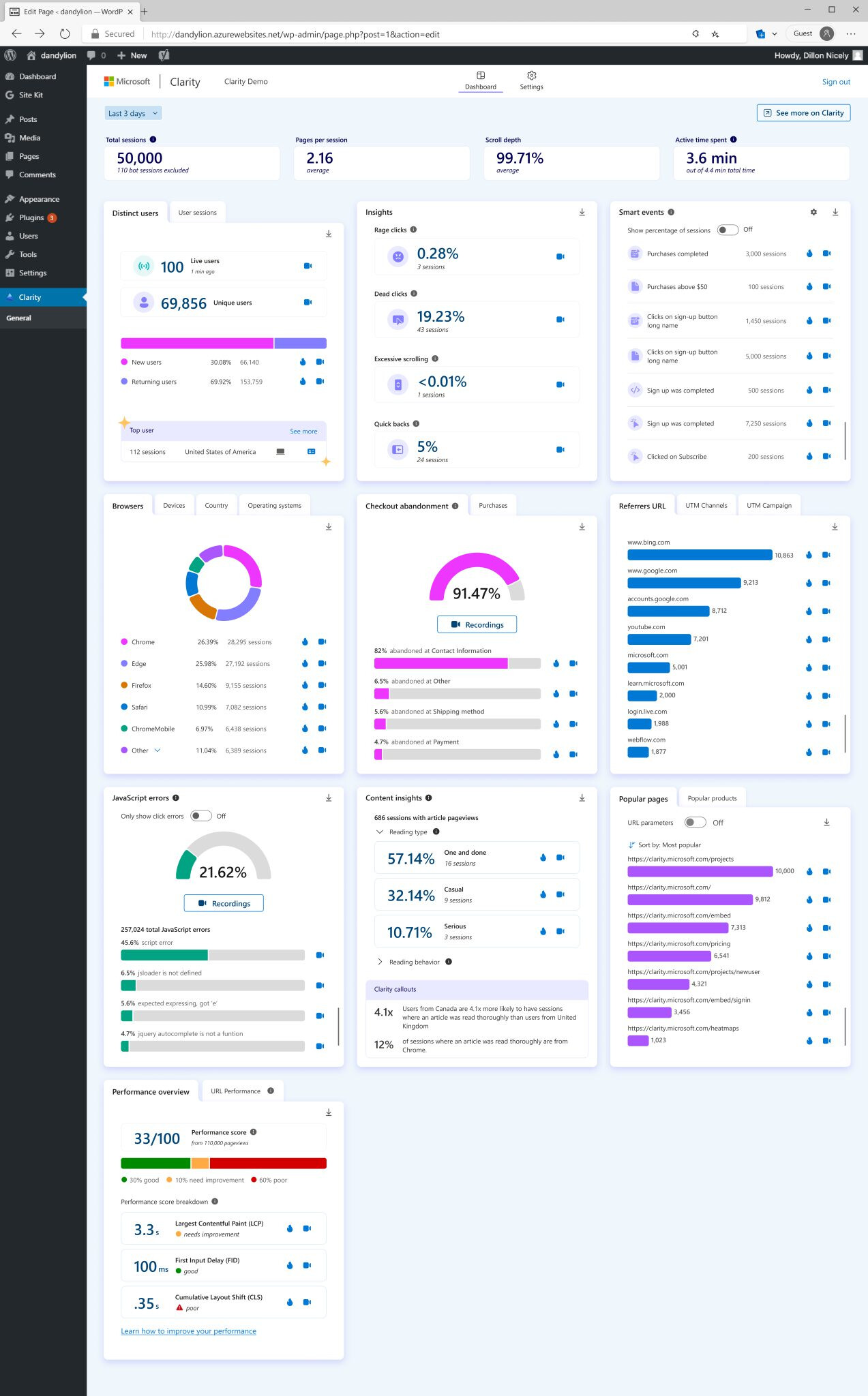 我们很高兴地宣布 Microsoft Clarity 与 WordPress 的集成迎来重大更新!此次更新将 Clarity 的所有强大功能直接引入 WordPress 平台,让您能更轻松地获取网站用户行为的宝贵见解。