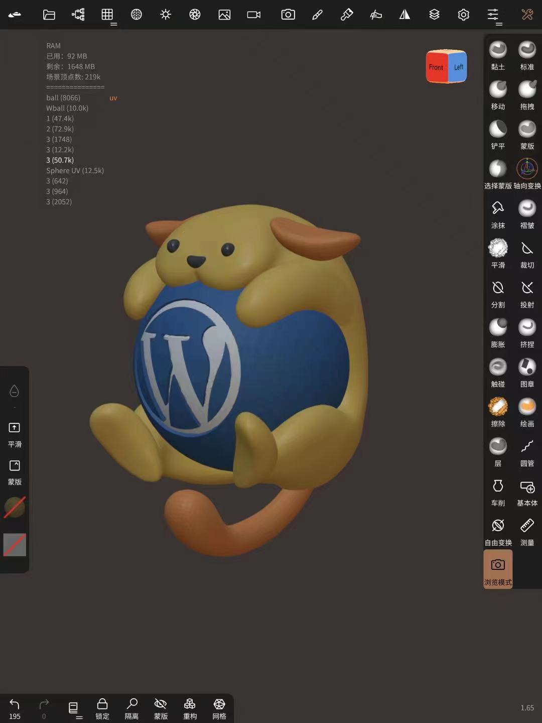 就这样差不多过了一周之后,我们再次看到Wapuu模型的时候,就完全变成了一个可以实现的3D效果。左右对称其实也不对称,但总的来说已经相当不错了,整体形象已经出来了。