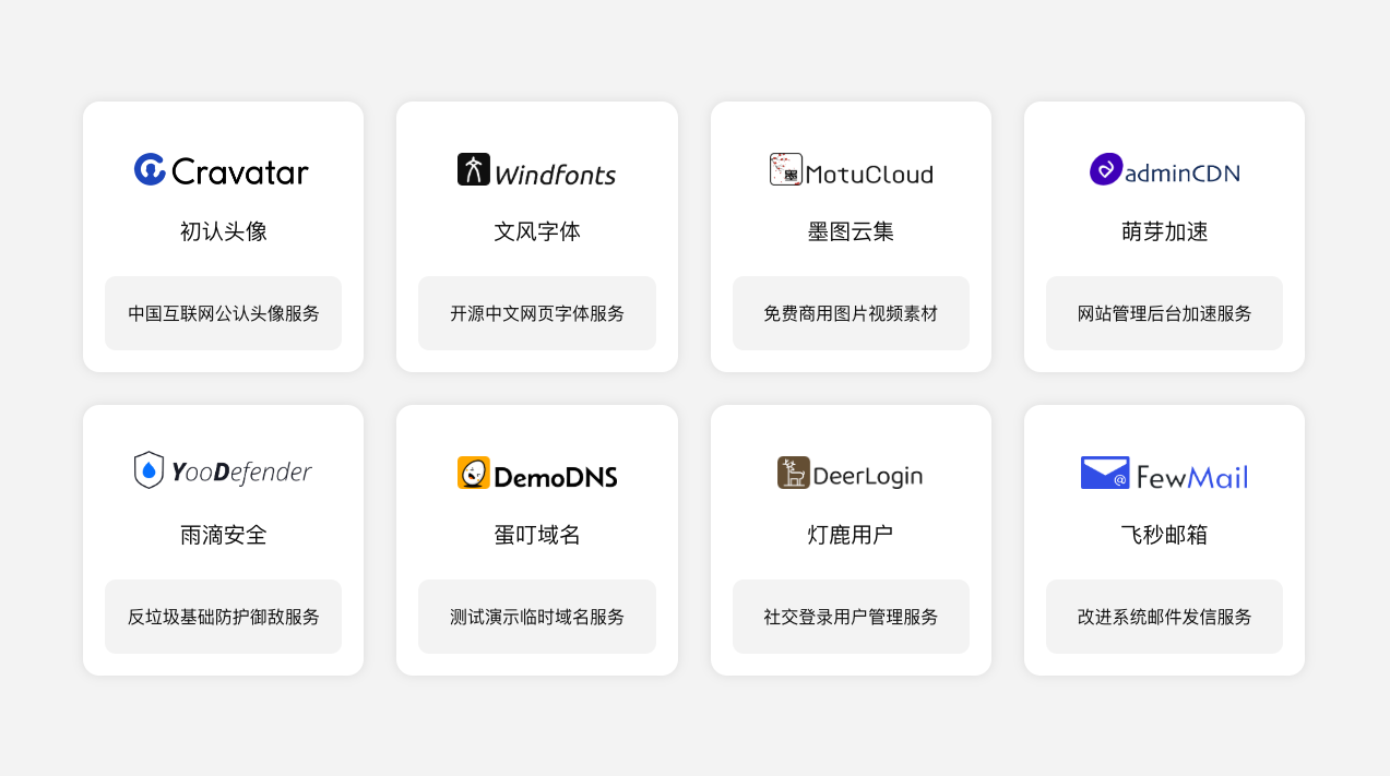 Cravatar 头像不会有商业计划将会是完全免费的,这是由于服务本身性质决定,但对于 CDN 加速和 Web 字体这些大批量消耗流量资源的平台项目我们将会在明年开始提供认证接入和高可用的付费线路(国内外各大云厂商)选择,这些付费项目依旧是在保障免费服务可用的情况下提供也主要是面向需要更稳定和更多个性配置的企业。